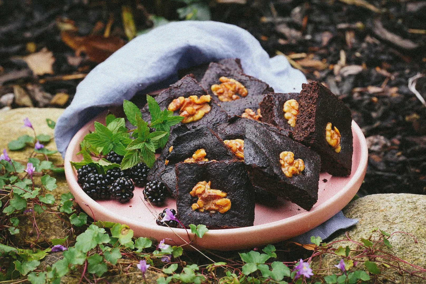 Rör ihop alla ingredienser (utom valnötterna) i en bunke för att sedan bred ut på en smord for eller bakplåtspapper. Måtten jag använder mig av är ca 25x25 cm. Lägg valnötterna och grädda mitt i ugnen i ca 25 minuter 175 grader. Skär upp och avnjut på direkten med grädde och färska bär.