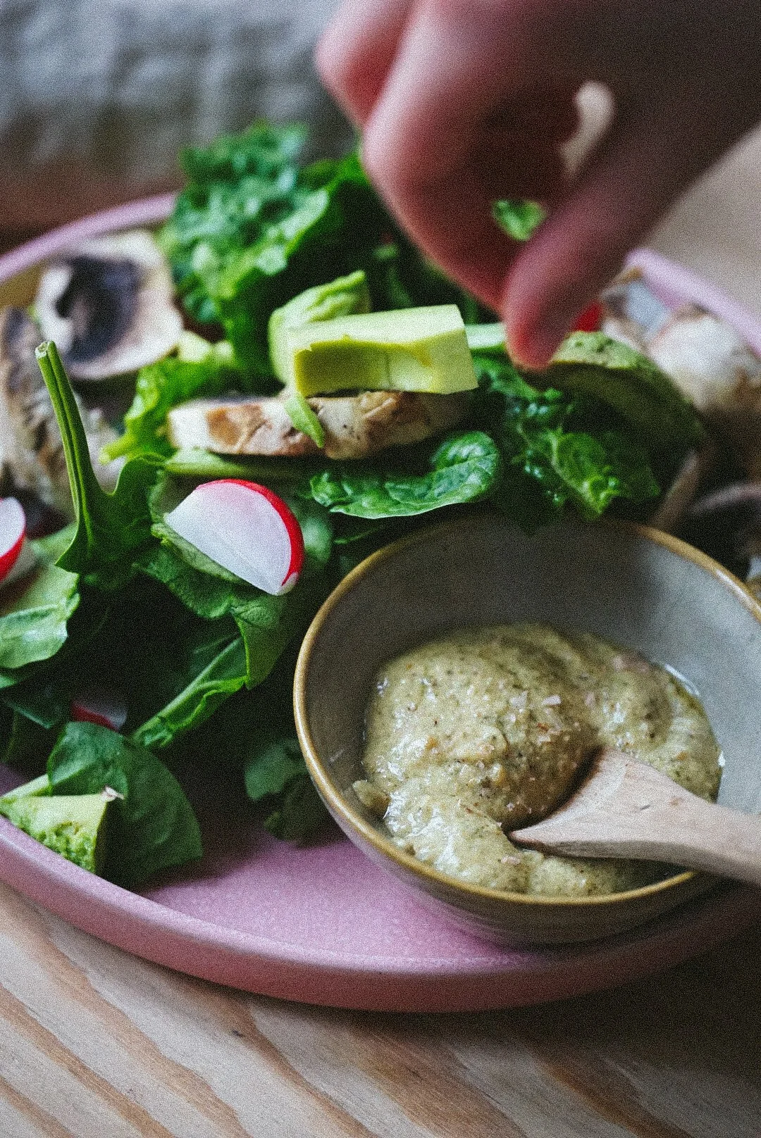 Spenatsallad med champinjoner och avocado