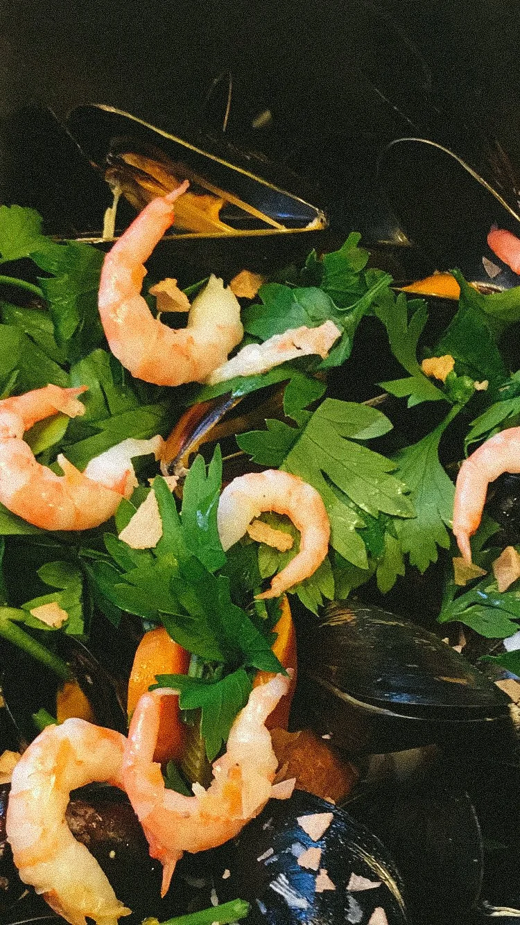 Häll olivolja i botten på en rejäl gryta och fräs löken, rotfrukter och fänkål ca 3 minuter. Krydda med cayennepeppar och slå på spad, vatten och fond. Låt pluddra under lock i 10 minuter. Skär fisken bitar och lägg den soppan, samtidigt som du stänger av värmen lägger på locket igen och låt det stå i 5 minuter. Nu är soppan klar för att toppas med musslorna, räkorna och bladpersilja.